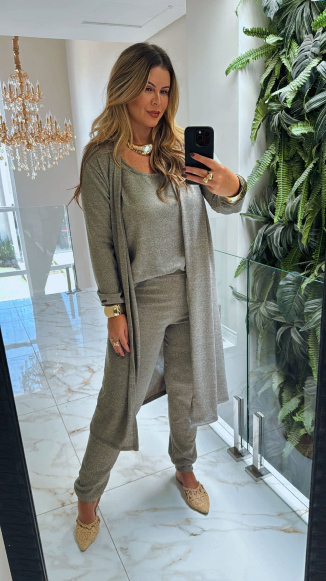 Conjunto 3 peças (regata, calça e cardigan)