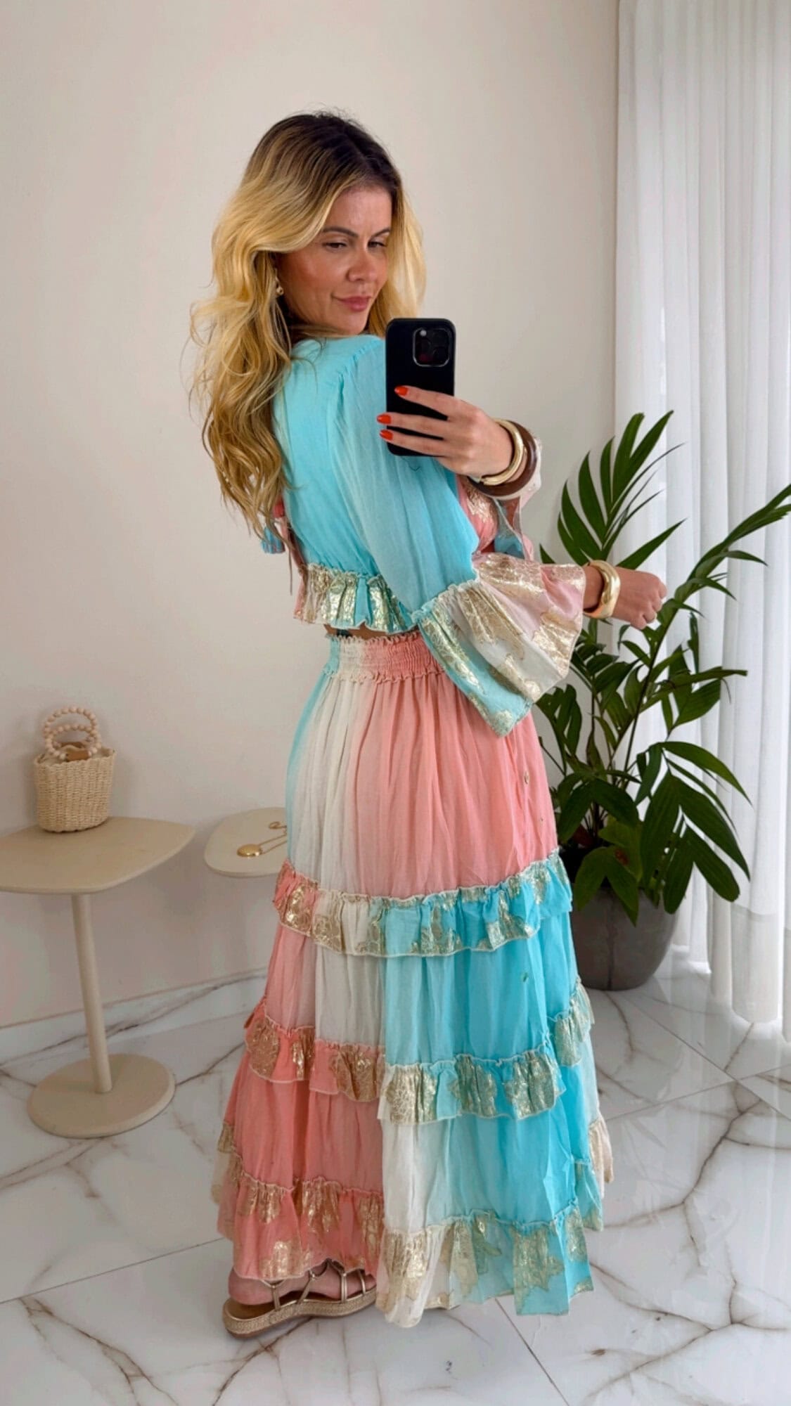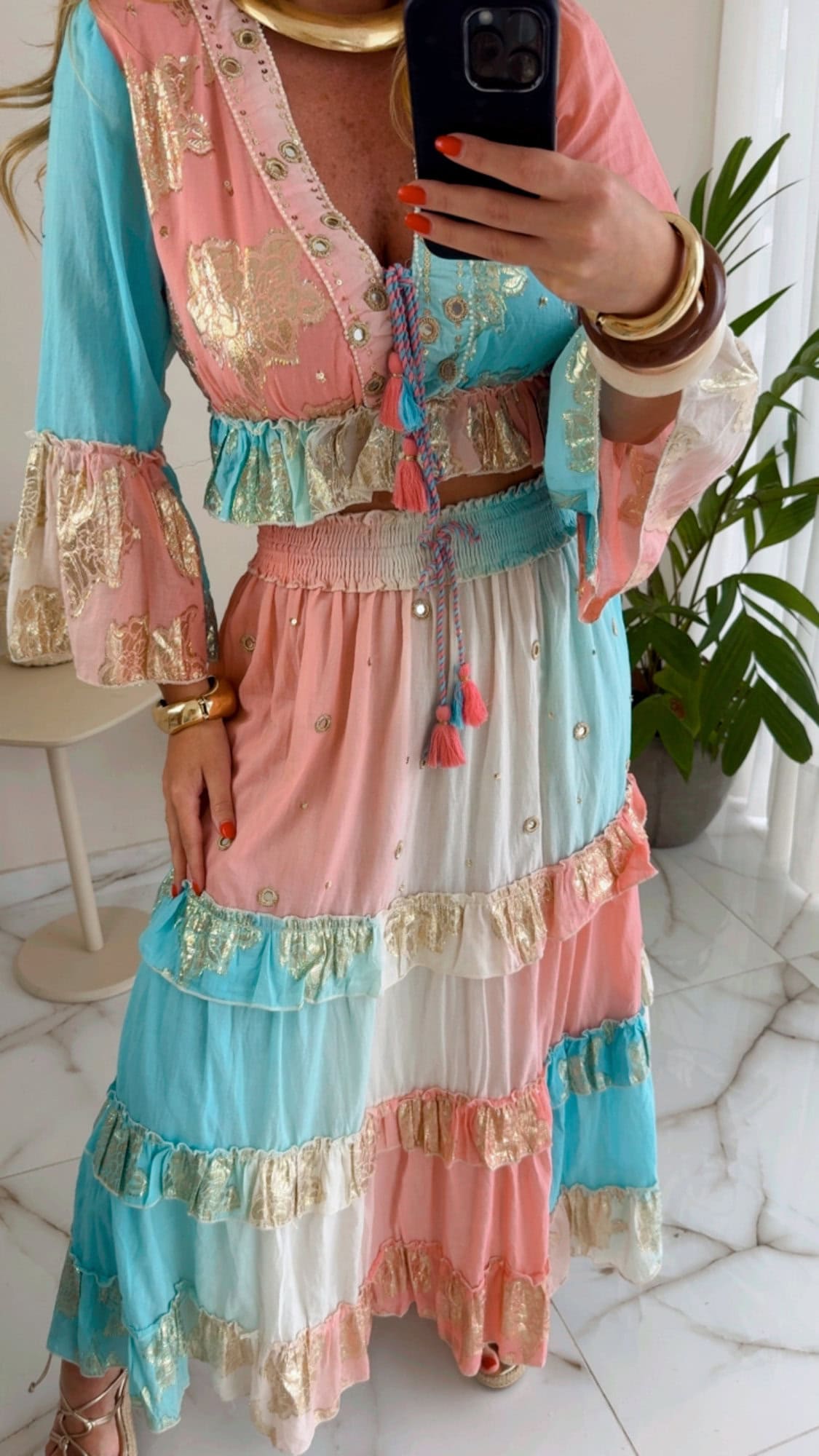 Conjunto Boho luxo azul/rosa