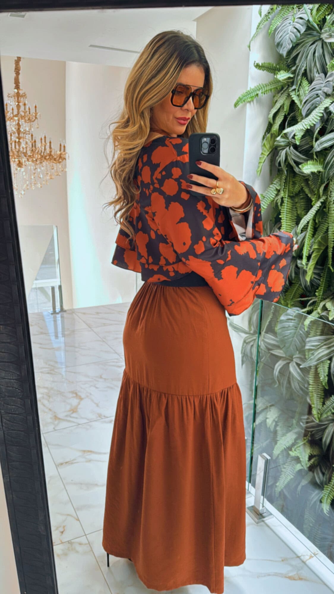 Saia longa fenda marrom