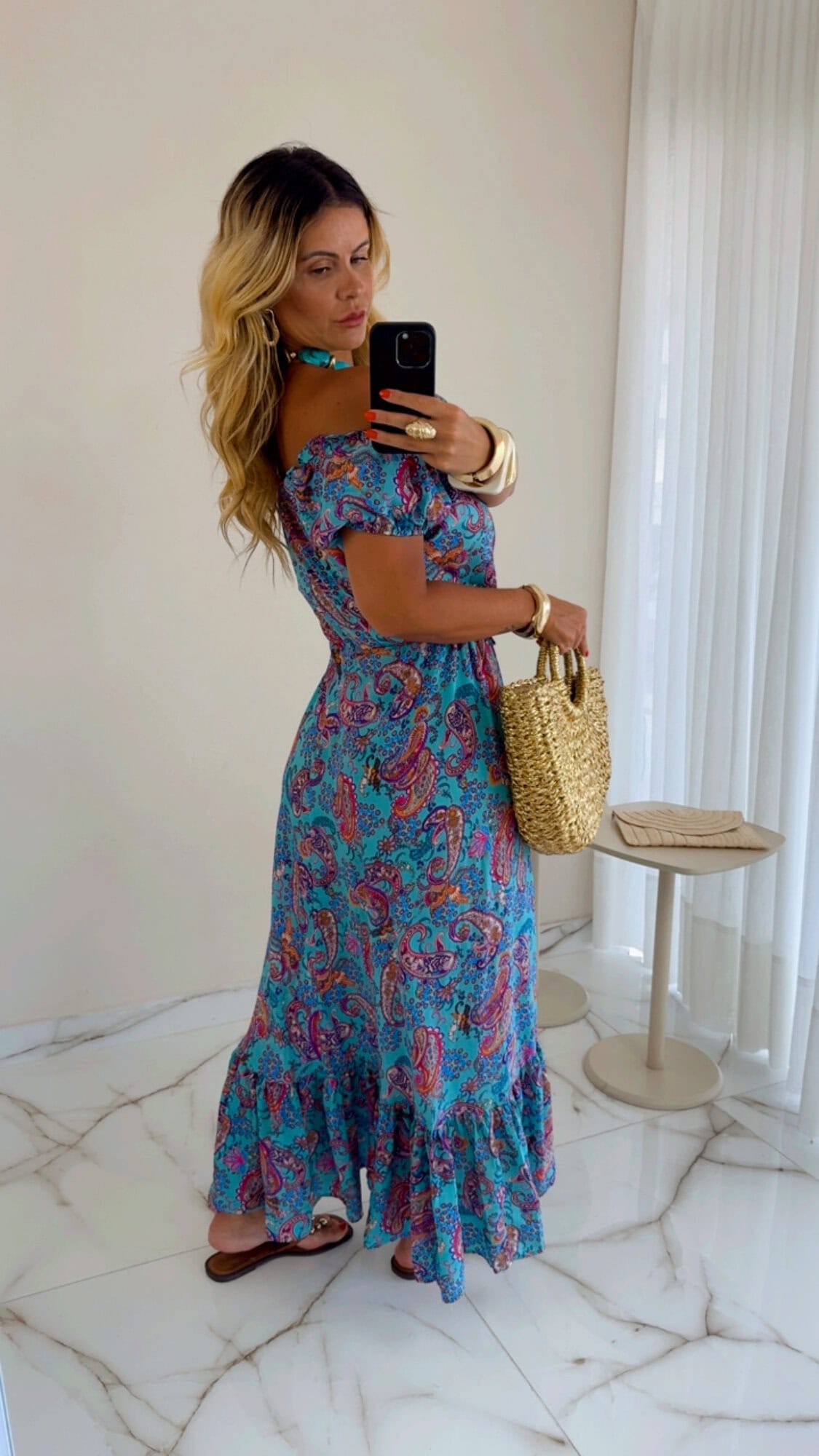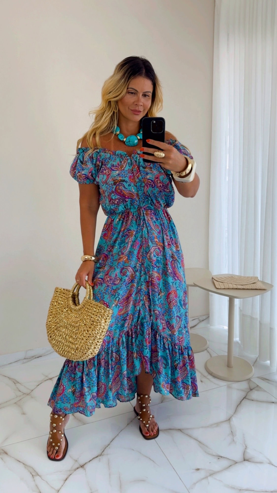 Vestido mullet estampado com botões na frente e regulagem na cintura