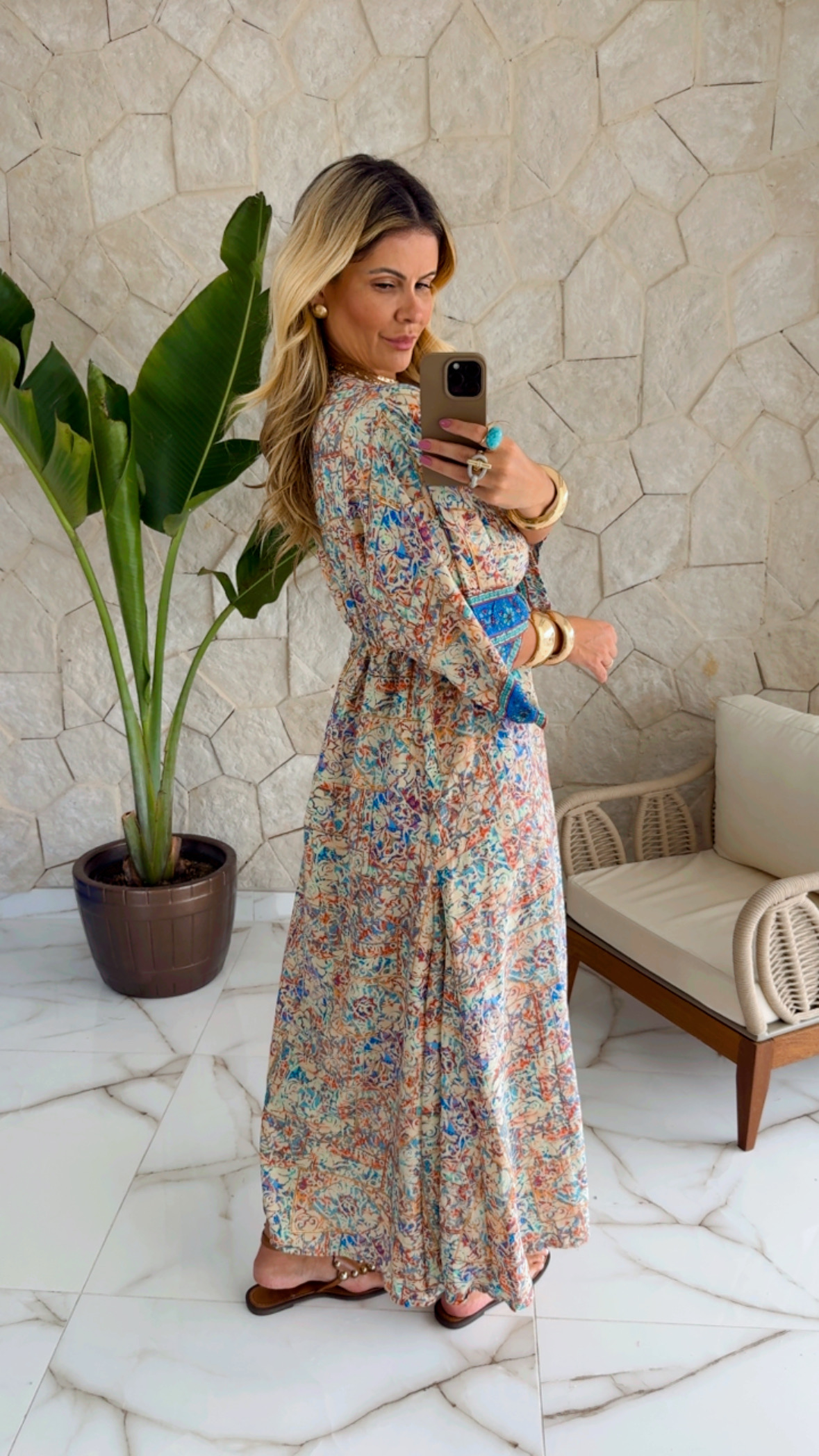 Vestido longo com botôes e elastico na cintura