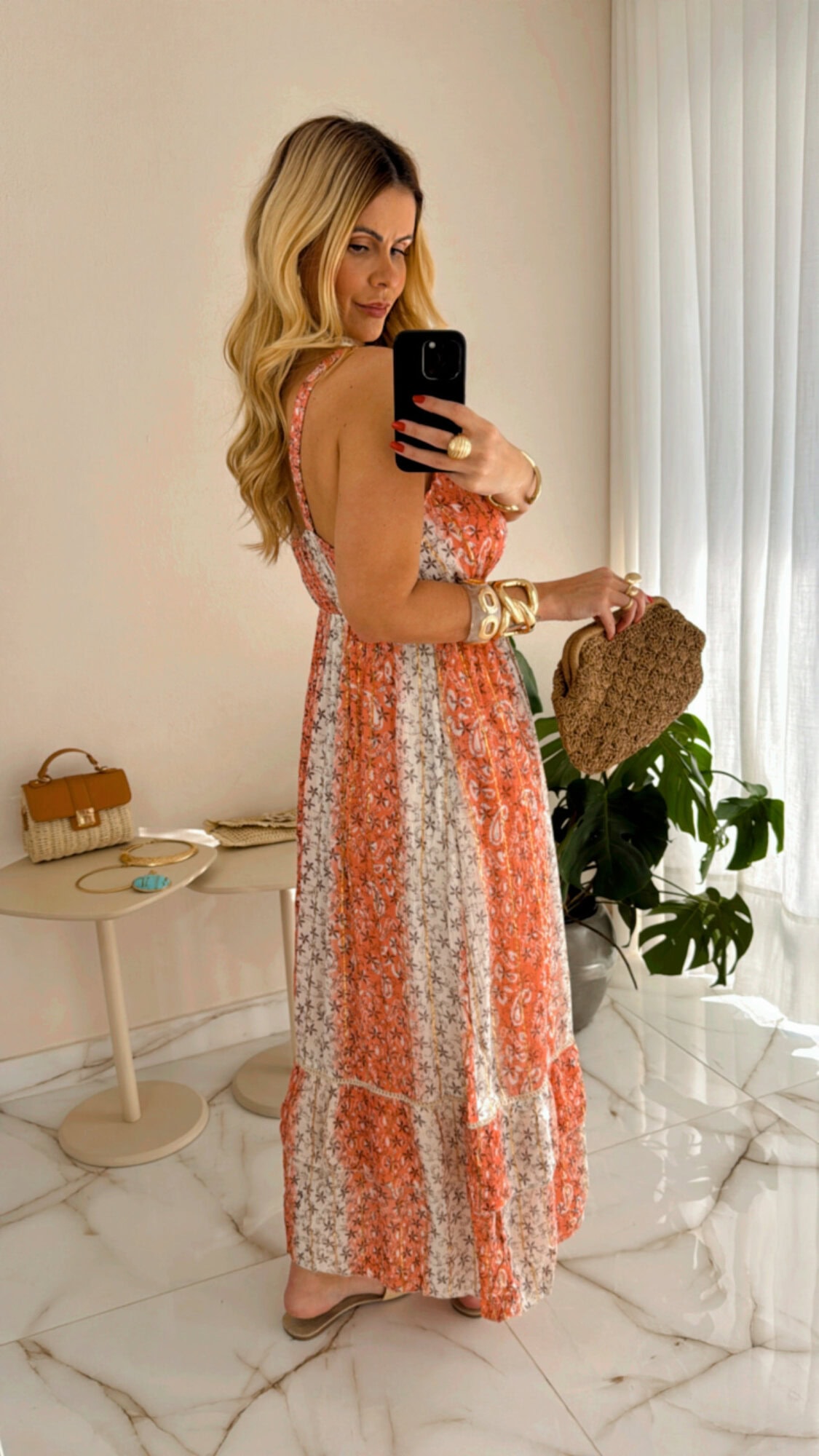 Vestido longo com lastex nas costas e elastico na alça.