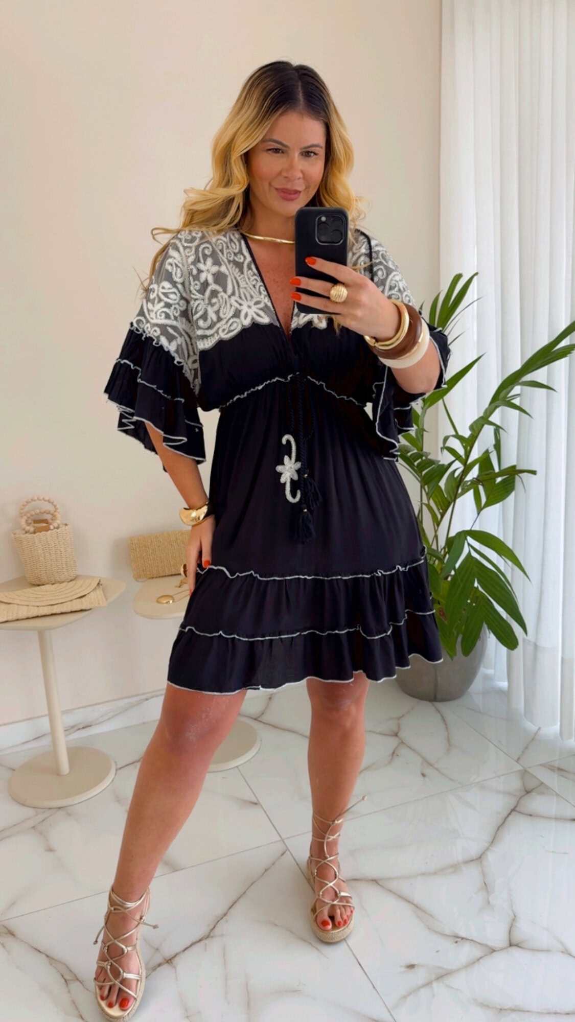 Vestido curto boho chic luxo preto