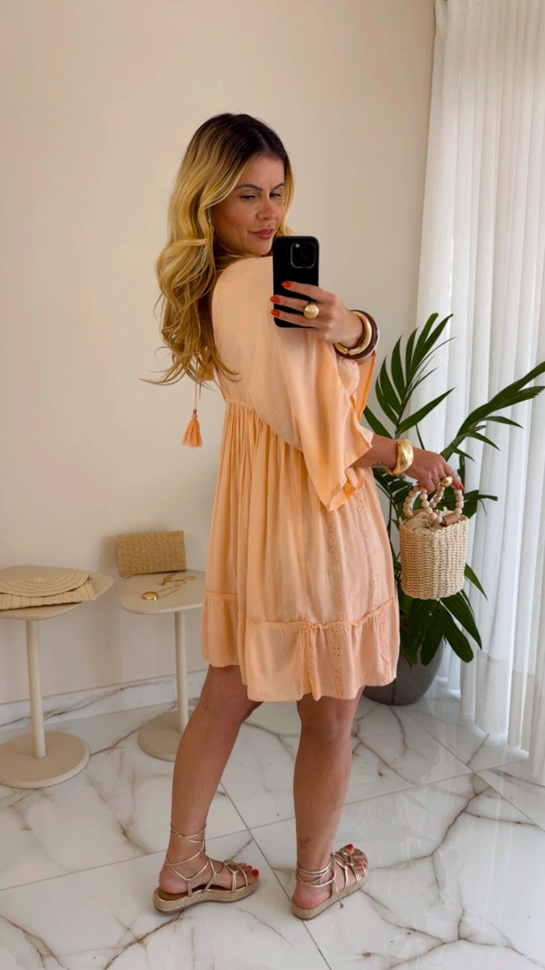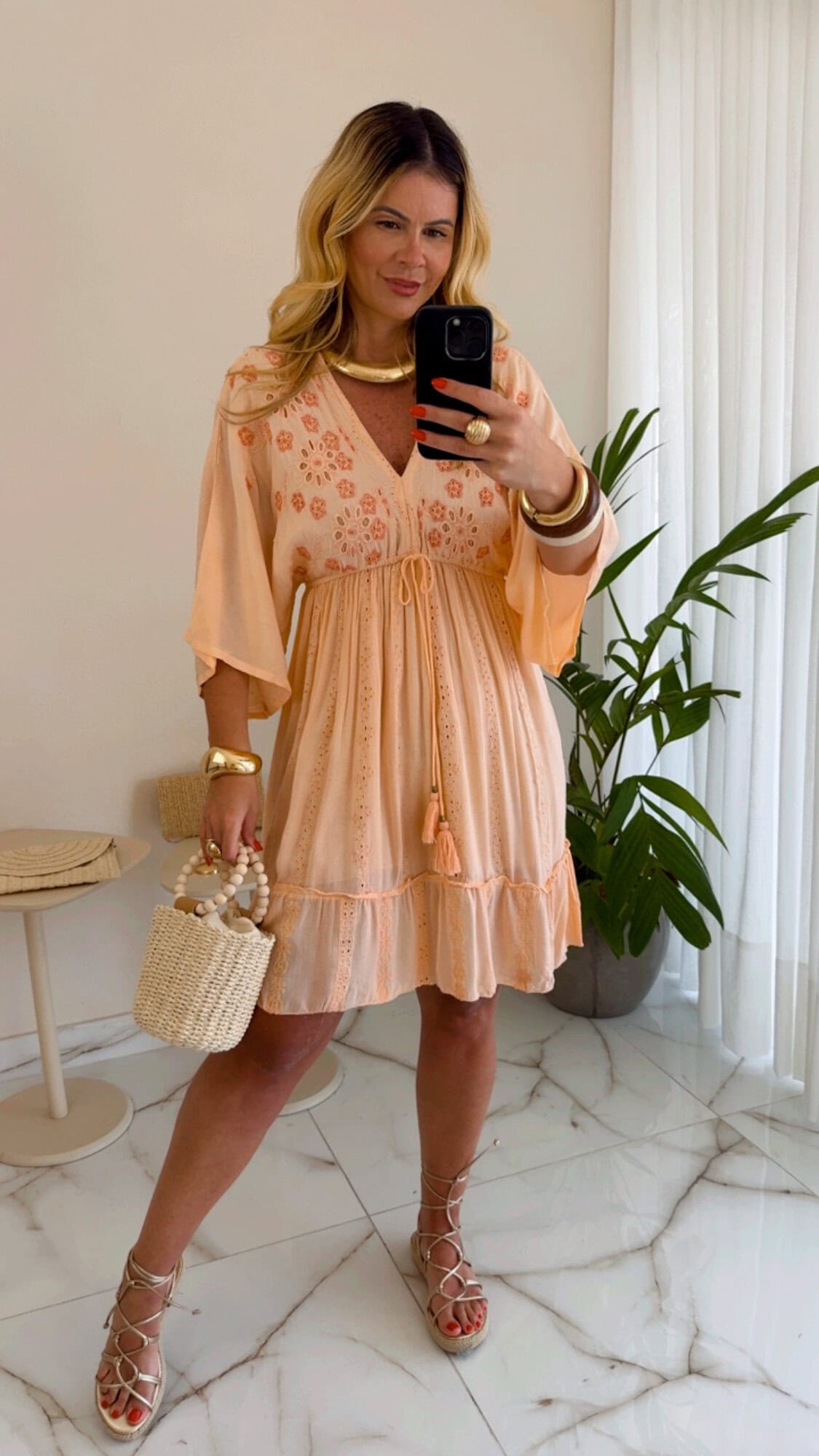 Vestido curto boho chic salmão