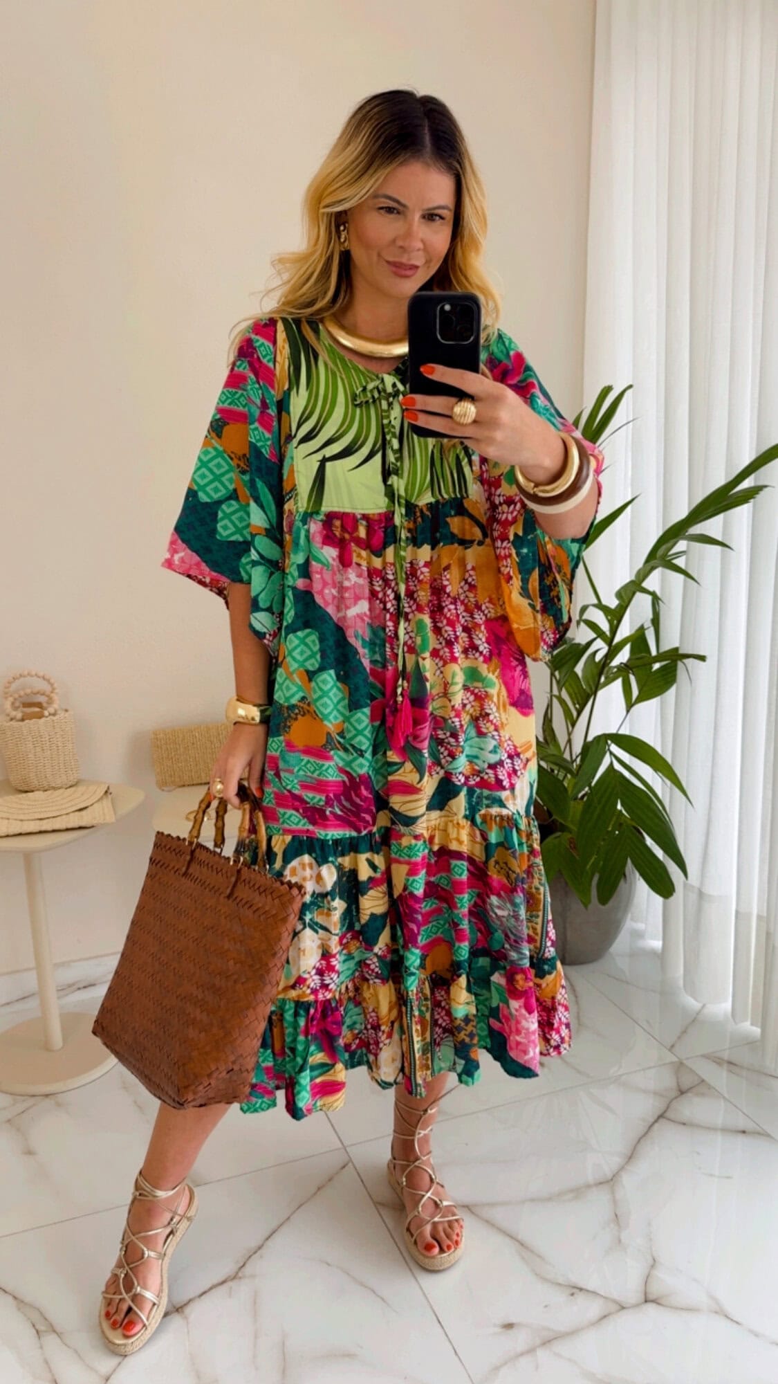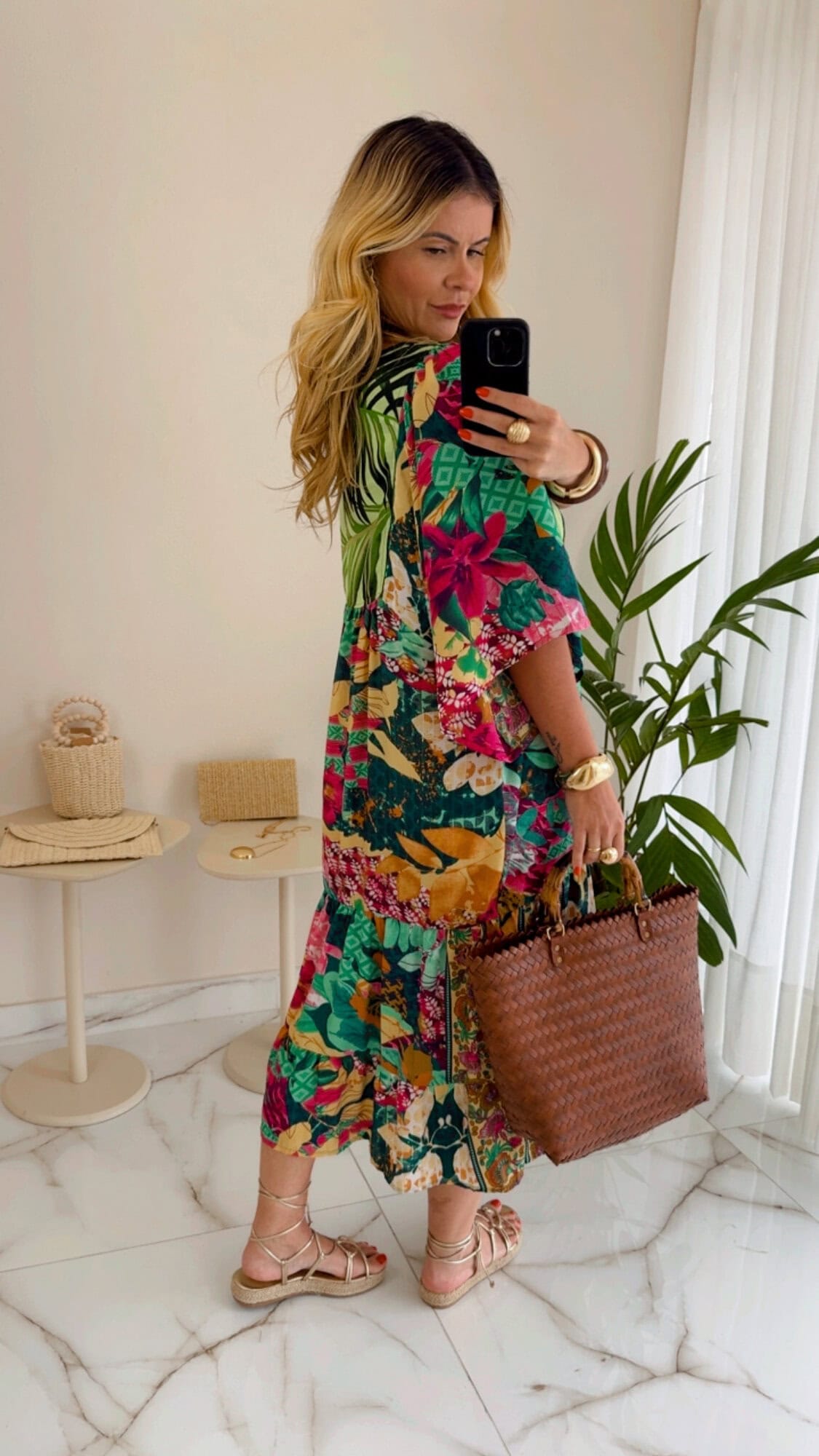 Vestido midi amplo estampado