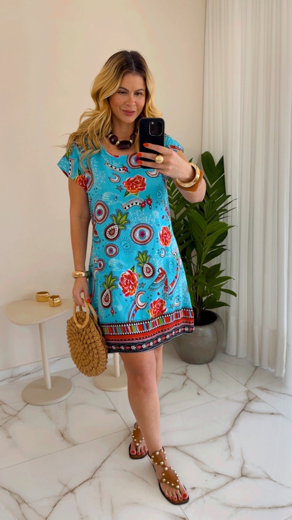 Vestido curto estampado com zíper nas costas