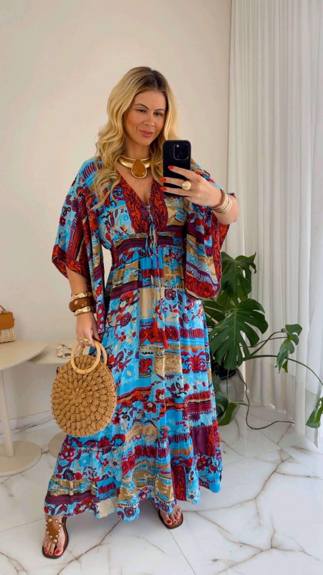 Vestido longo com lastex na cintura