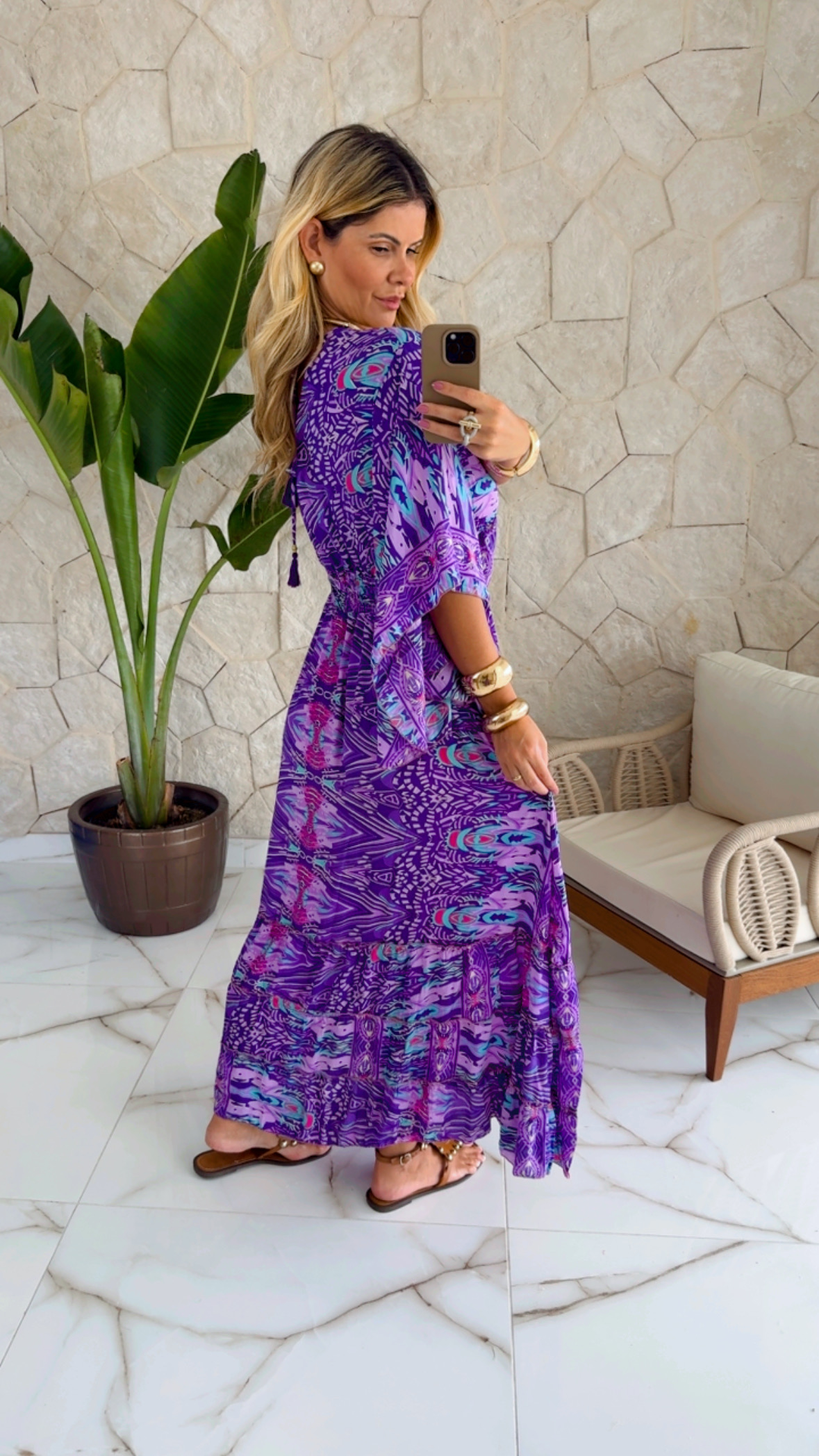 Vestido longo com lastex na cintura