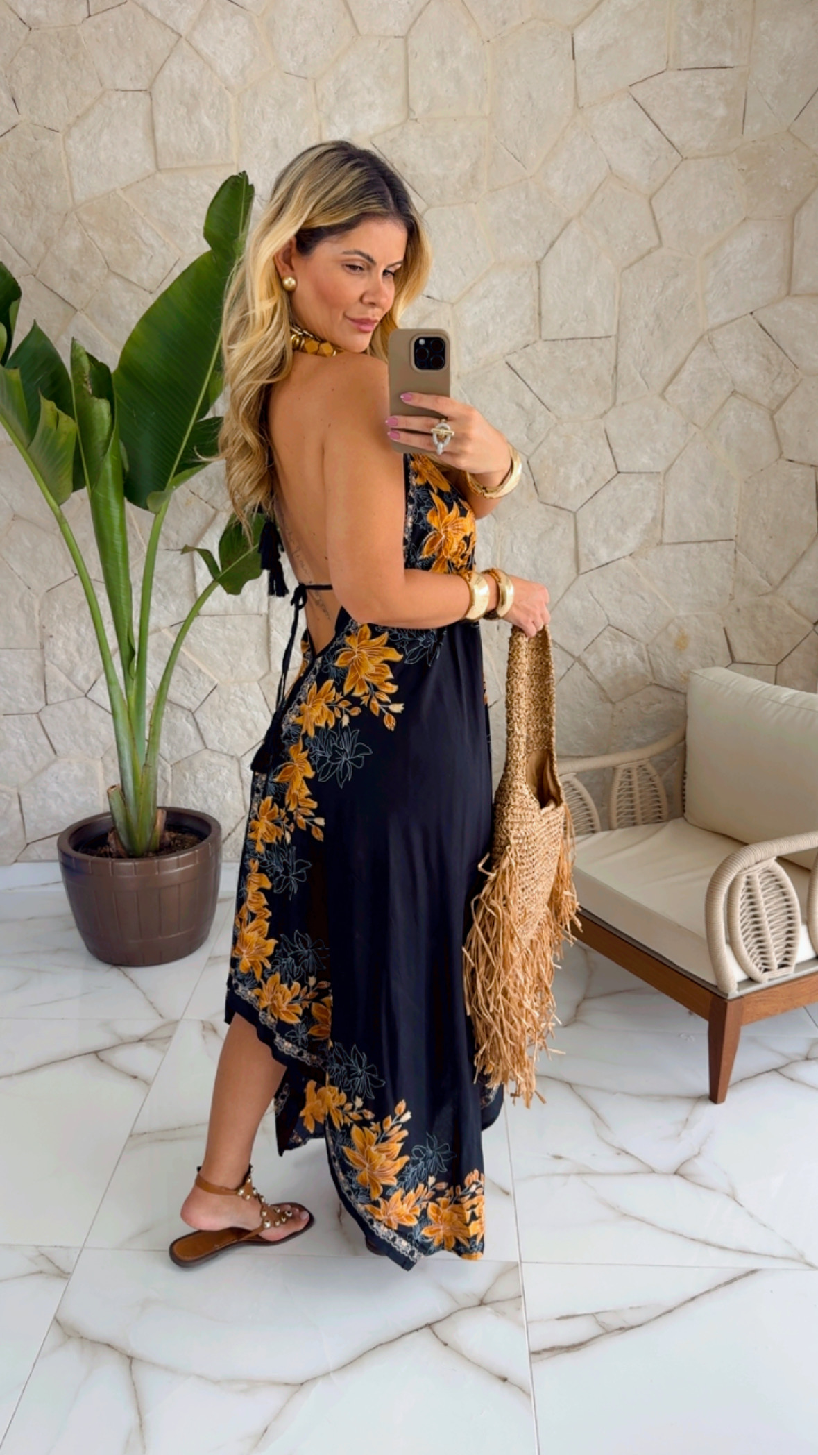 Vestido mullet com amarração nas costas