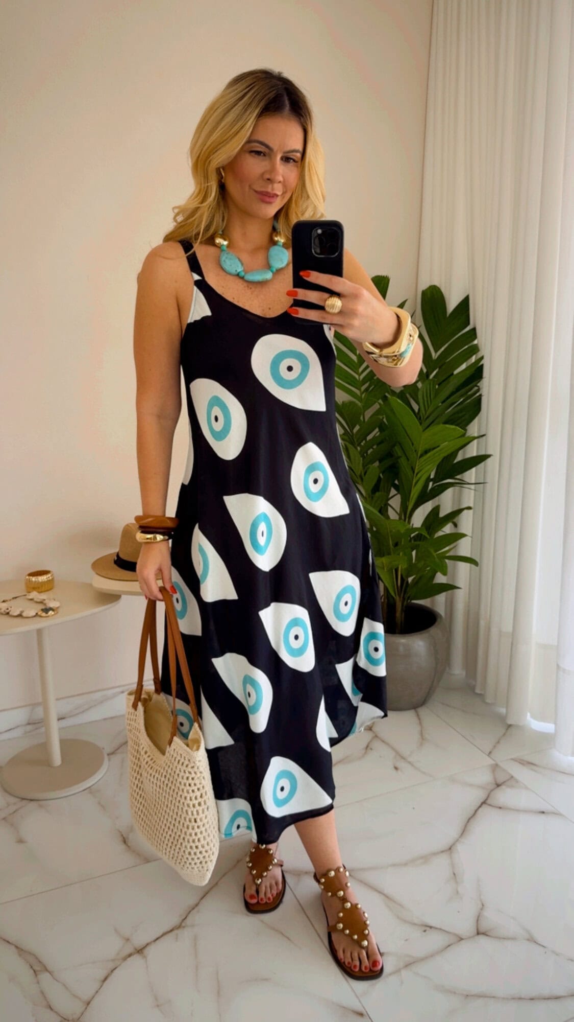 Vestido midi estampado com bolso.