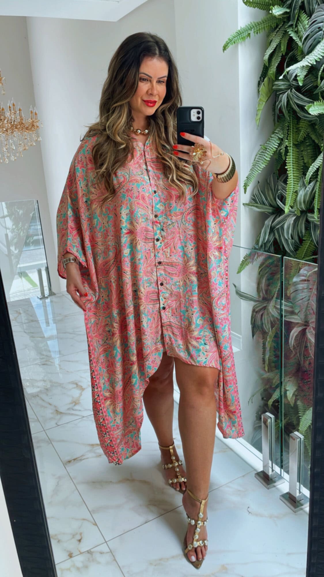 vestido amplo com botões.