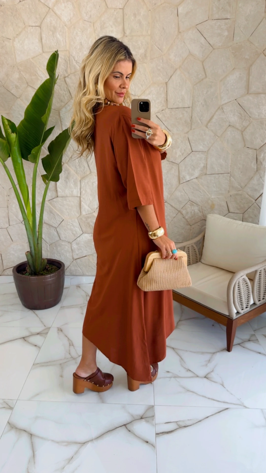 Vestido viscose marrom